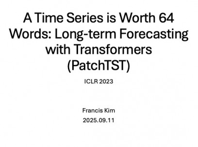 Topic: A Time Series is Worth 64 Words: Long-term Forecasting with Transformers Keywords: Time Series Forecasting Transformer Patch Embedding Channel-Independence Self-Supervised Learning …